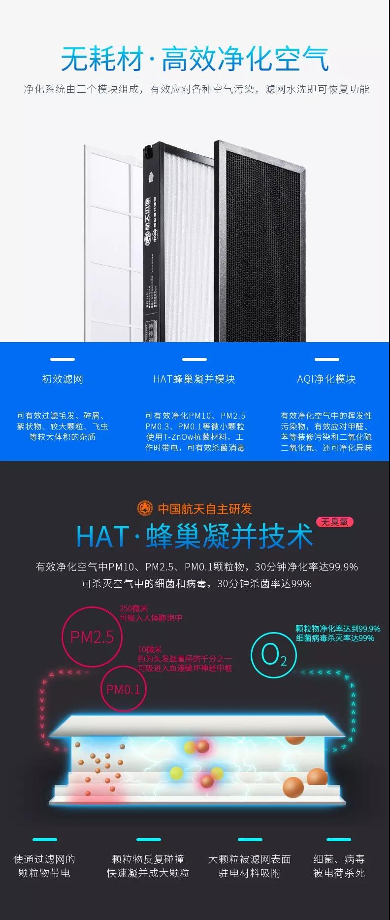 航天迅馳空氣凈化器為無(wú)耗材空氣凈化器,凈化效能超2016新國(guó)標(biāo)3倍;CARD值(每小時(shí)凈化空氣量)335立方米/每小時(shí)(大);運(yùn)用中國(guó)航天自主研發(fā) HAT·蜂巢凝并技術(shù),有效凈化空氣中PM10、PM2.5、PM0.1顆粒物,30分鐘凈化率達(dá)99.9% 可殺滅空氣中的細(xì)菌和病毒,30分鐘殺菌率99%。