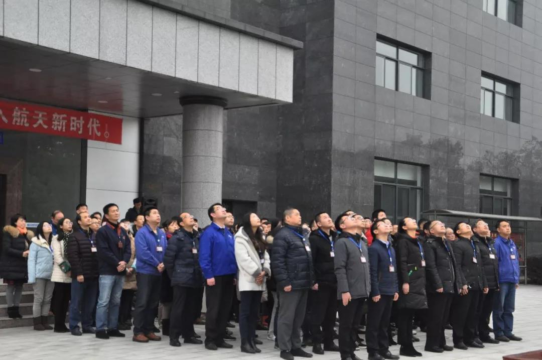 成都航天領導班子、干部職工代表等近百人參加了儀式。上午九時,在雄偉莊嚴的國歌聲中,鮮艷的五星紅旗冉冉升起,隨后伴隨著鏗鏘有力的航天科工之歌,航天科工司旗緩緩升起,參加儀式的全體干部職工整齊列隊,莊嚴肅立,面向三面飄蕩的旗幟行注目禮,伴隨著激昂的旋律,共同祝愿偉大的祖國更加繁榮昌盛!祝愿祖國的航天事業更加輝煌!