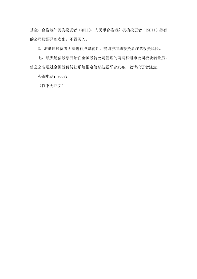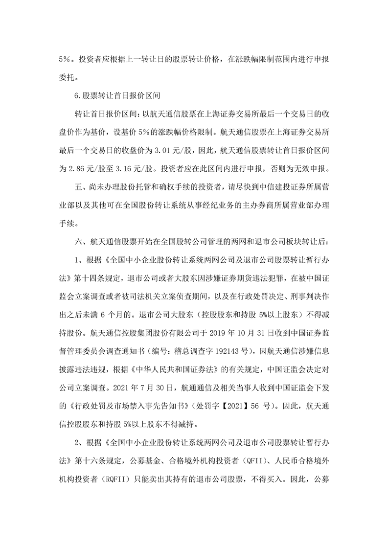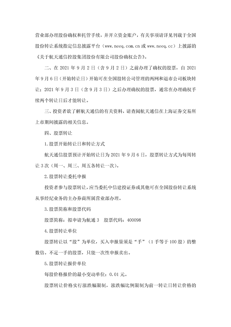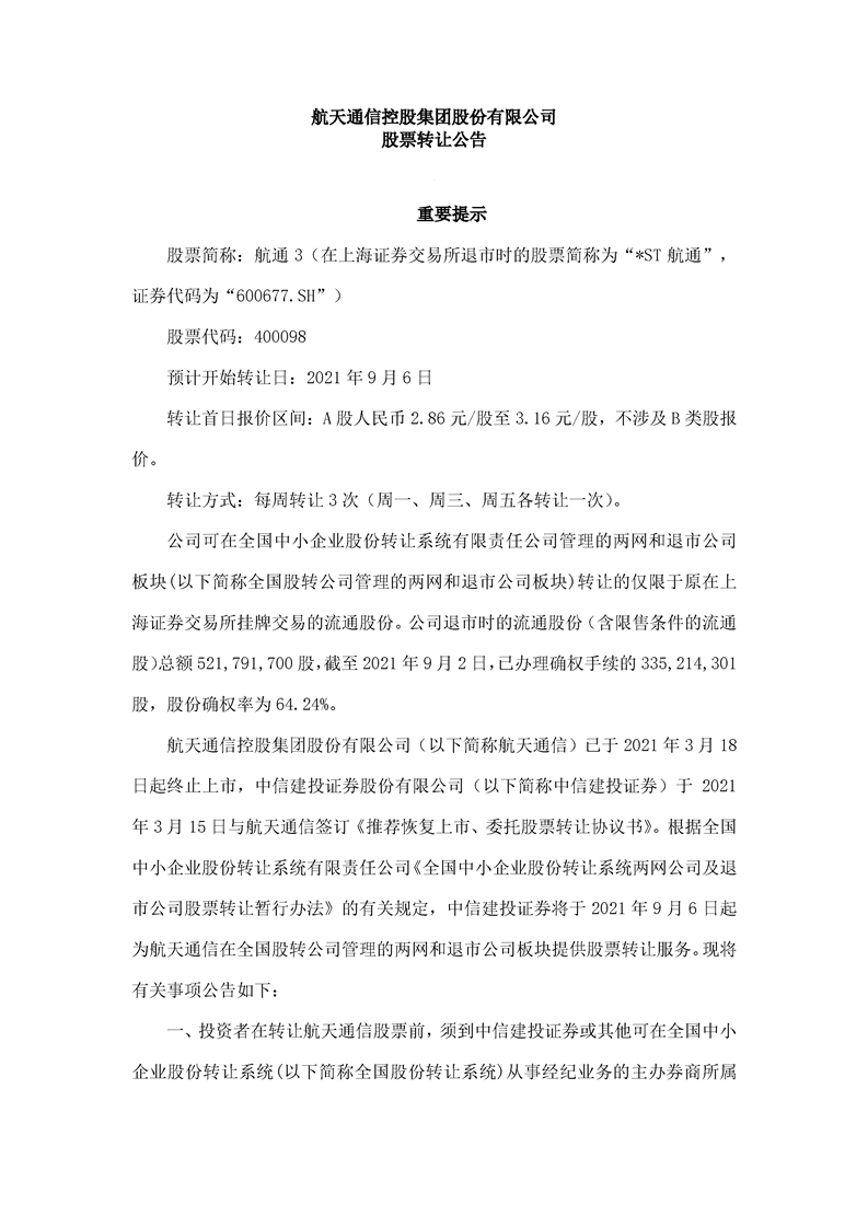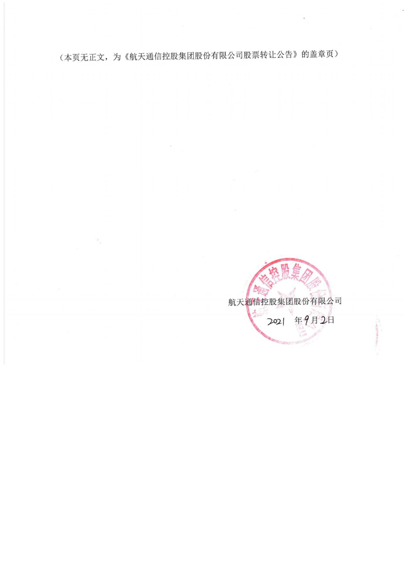 航天通信控股集團股份有限公司股票轉(zhuǎn)讓公告